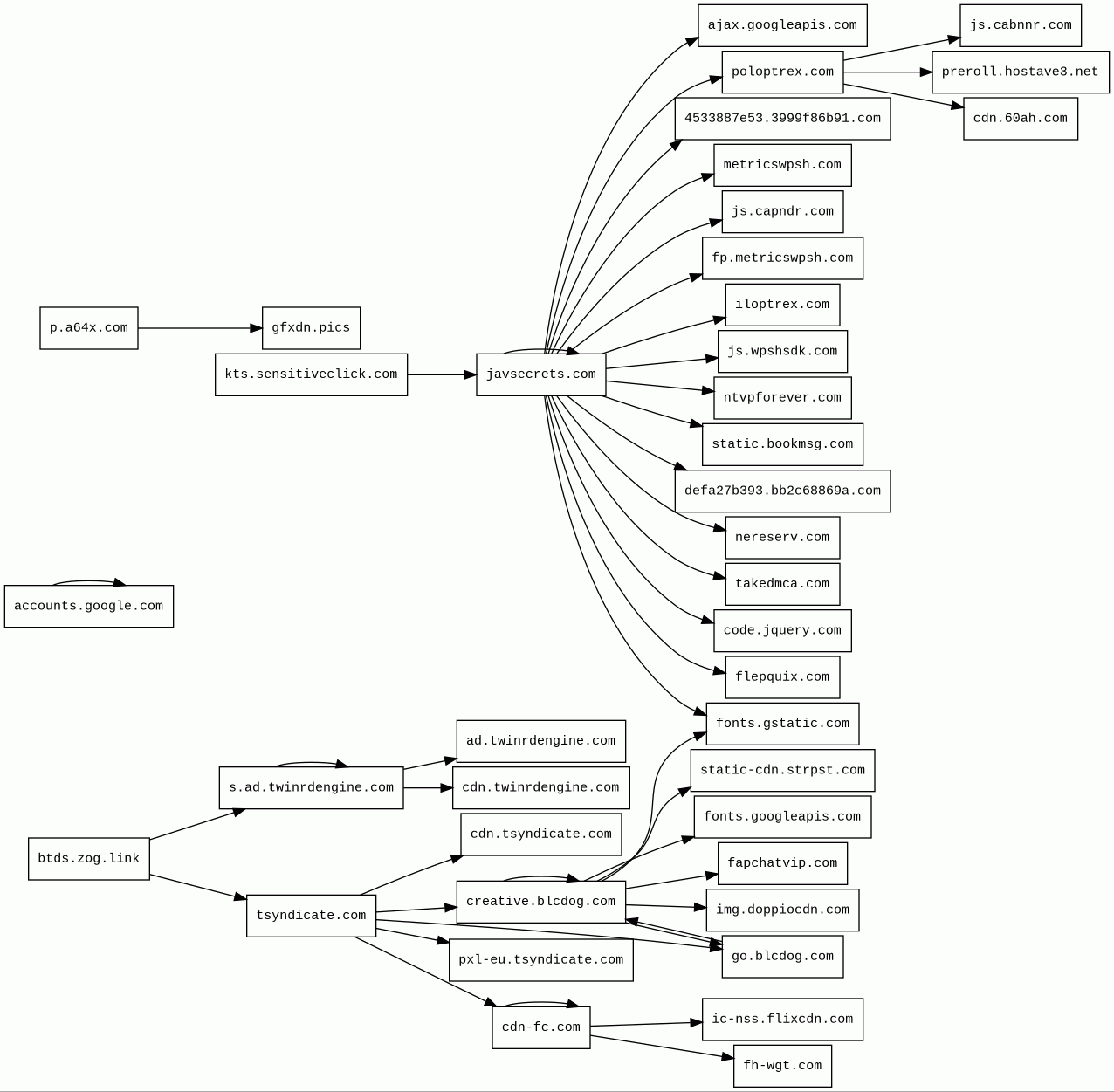 cdn.tsyndicate.com | 40822 | 2017-03-08 | 2017-07-04 | 2026-01-01 | 1.1 kB | 12 kB | ![]() 45.133.44.70 | |