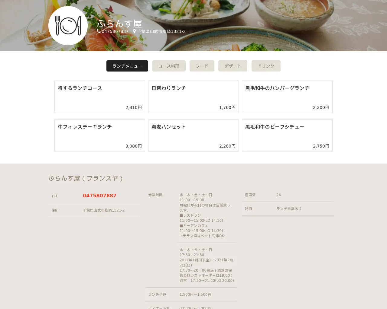 ランチメニュー|ふらんす屋