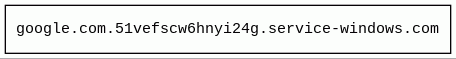 google.com.51vefscw6hnyi24g.service-windows.com 3 alert(s) on this Host | unknown | 2022-01-21 | 2026-04-01 | 2026-04-01 | 1.5 kB | 0 B | ![]() 0.0.0.0 |