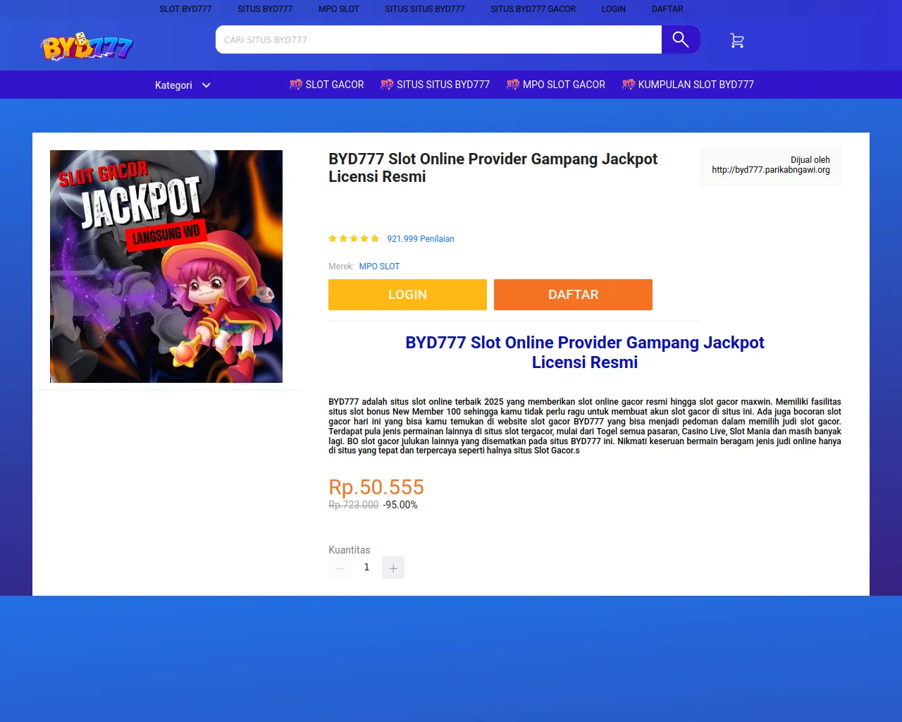 BYD777 Slot Online Provider Gampang Jackpot Licensi Resmi