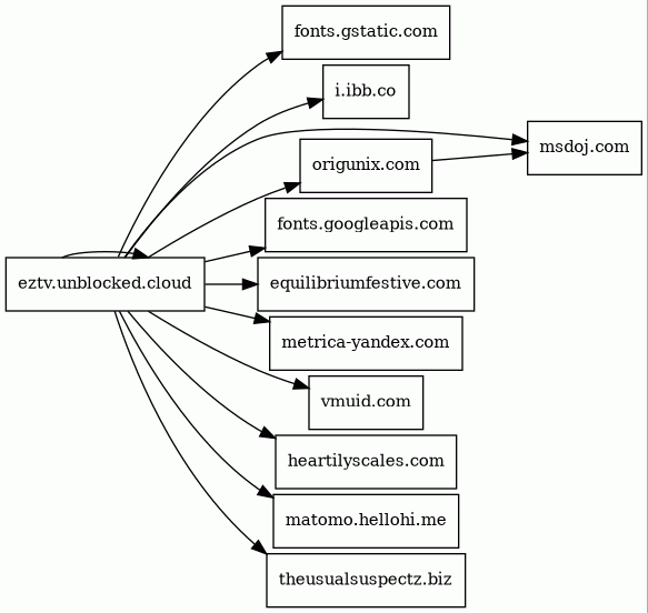 eztv.unblocked.cloud | unknown | 2018-07-01 | 2025-07-10 | 2025-07-10 | 13 kB | 285 kB | ![]() 172.67.149.238 | |
