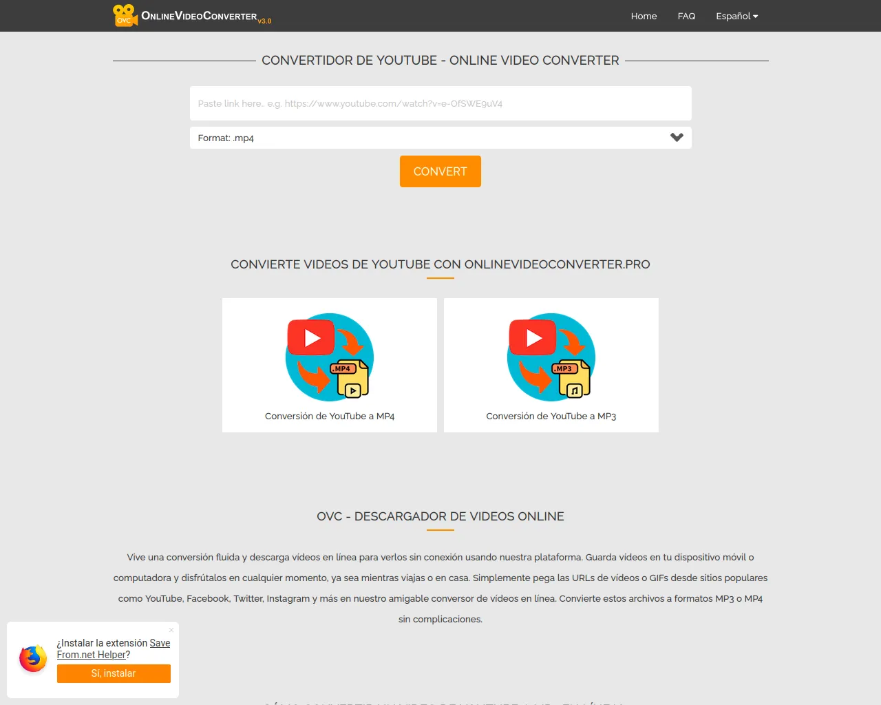 Convertidor de YouTube ❤️ OnlineVideoConverter