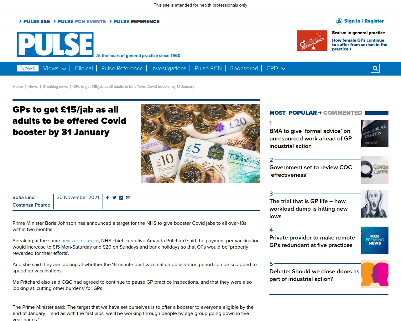 GPs to get £15/jab as all adults to be offered Covid booster by 31 January - Pulse Today
