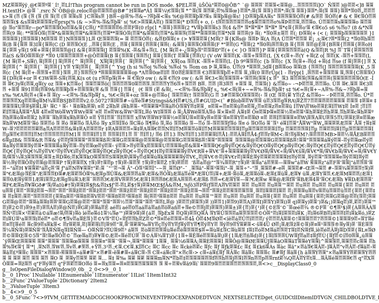 File TypePE32 executable (GUI) Intel 80386 Mono/.Net assembly, for MS Windows, 3 sections