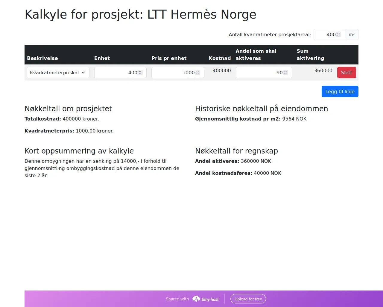 Kalkyle for prosjekt: LTT Hermès Norge