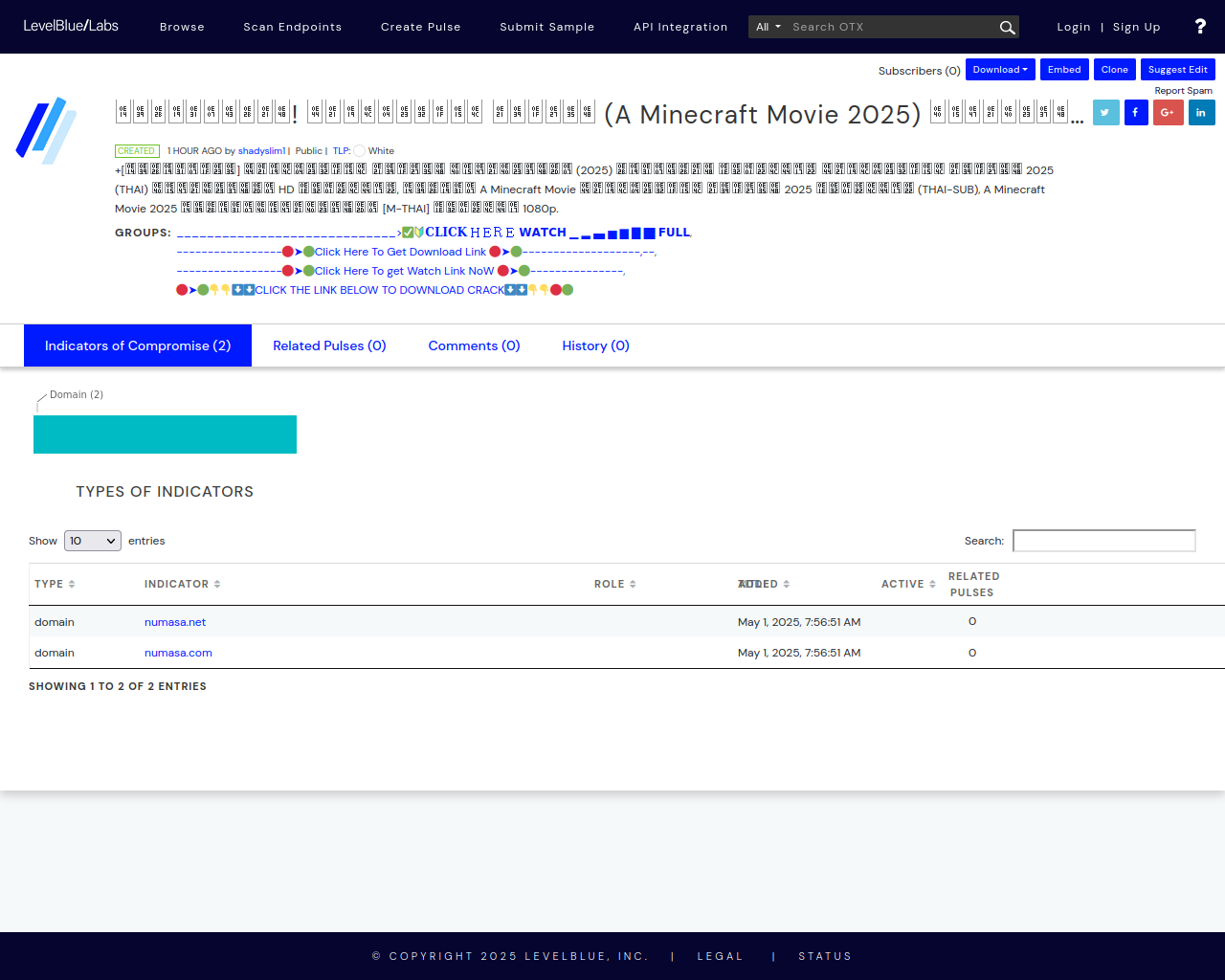 ดูหนังใหม่! ไมน์คราฟต์ มูฟวี่ (A Minecraft Movie 2025) เต็มเรื่องฟรี 1080p - LevelBlue - Open Threat Exchange