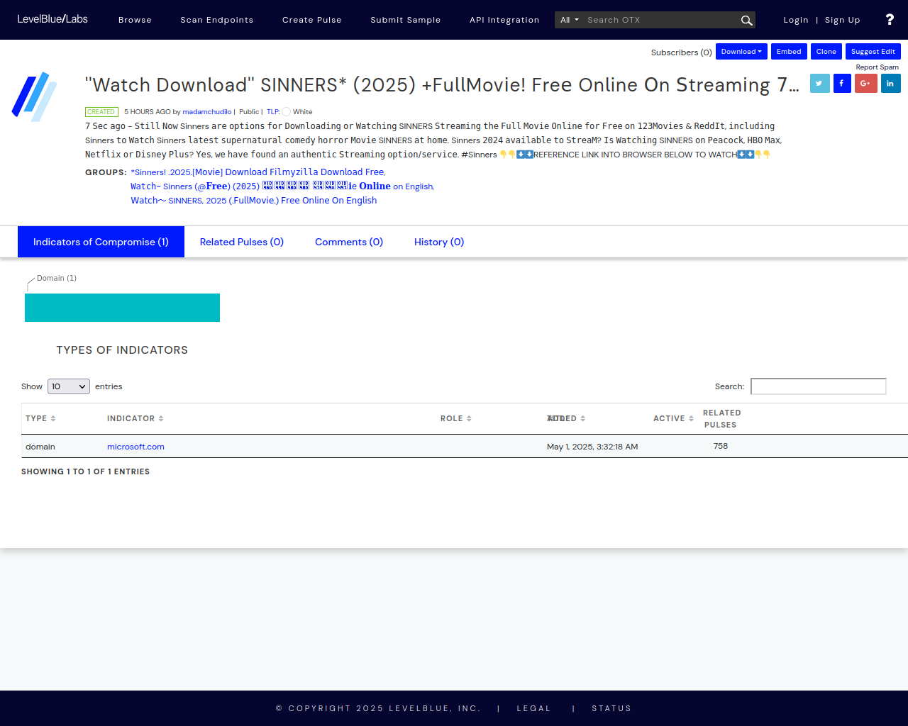 ine ๐ฎn ๐ฒtream๐ng ๐ฉ๐ค๐ข๐, ๐ฆ๐ช๐ข๐, ๐ฃ๐ข๐ช๐ข๐ & ๐ง๐ฃ - LevelBlue - Open Threat Exchange