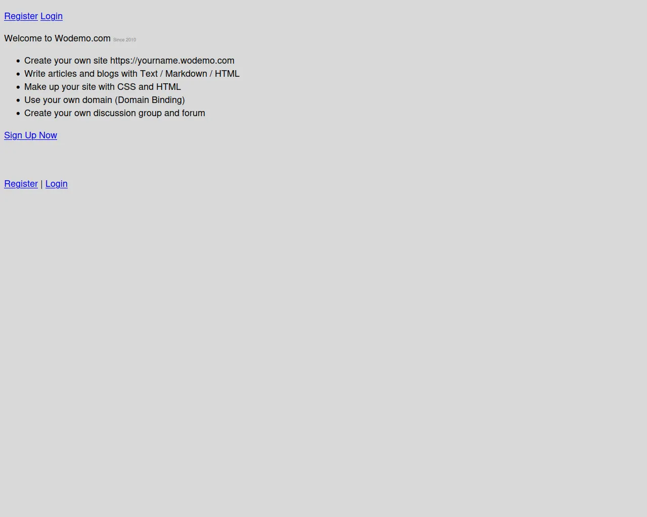 wodemo.com | 285997 | 2010-03-16 | 2015-01-11 | 2025-06-02 | 1.9 kB | 30 kB | ![]() 199.180.254.56 |